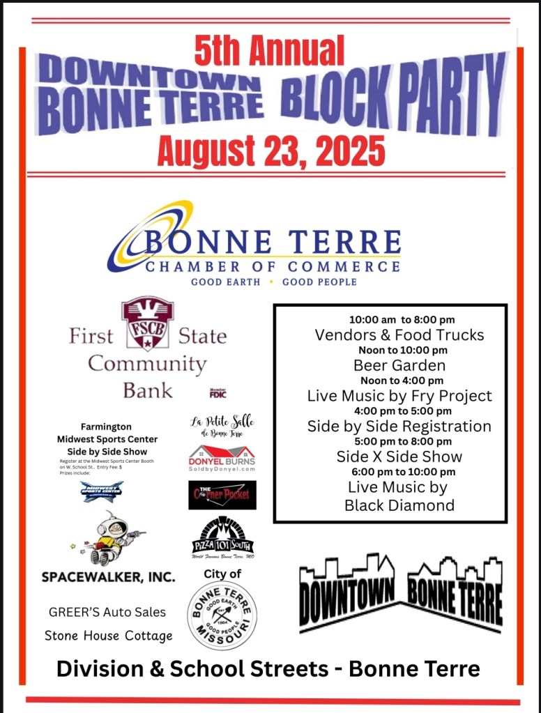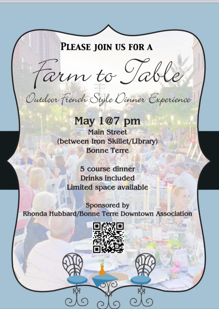 Bonne Terre Events Past Events Monday, Dec 1, 2025 7:00 PM – 8:00 PM THE FARM TO TABLE EVENT HAS BEEN CANCELLED 2025
